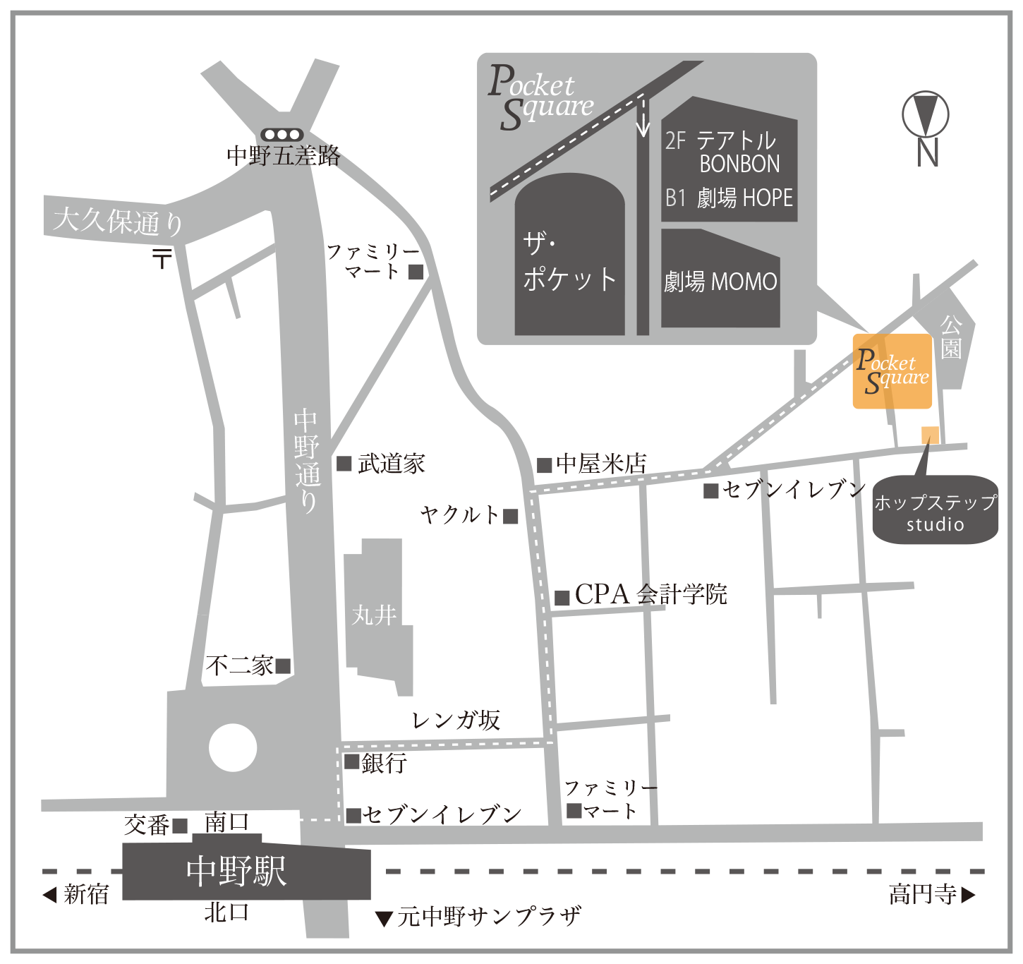 JR中央・総武線/東京メトロ東西線 中野南口より徒歩5分。